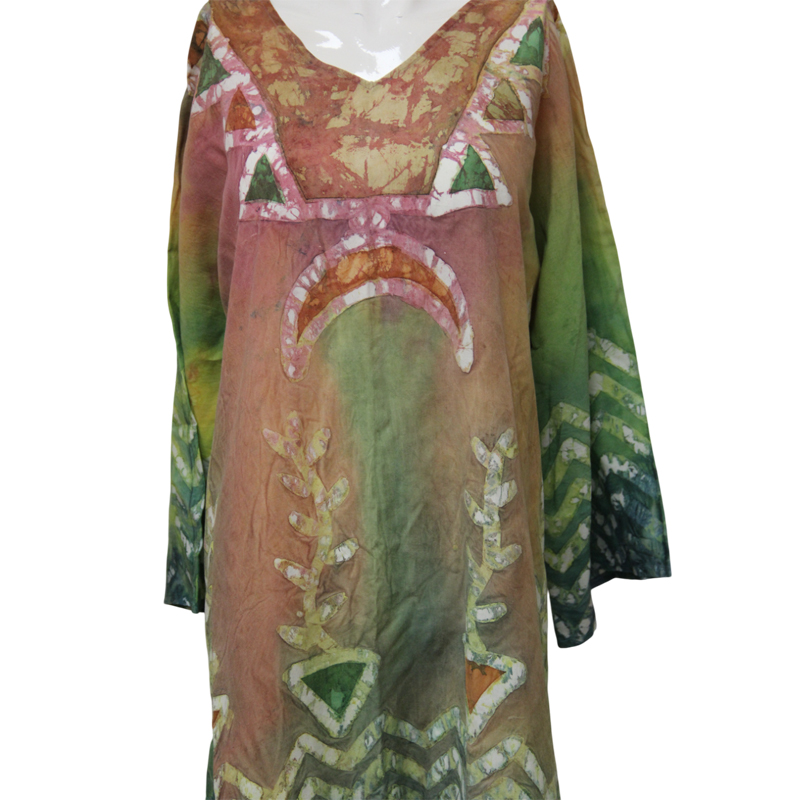 تونيك نسائي مطبوع بالكامل بفن الباتيك بنمط الزرع النوبي، مريح وأنيق.