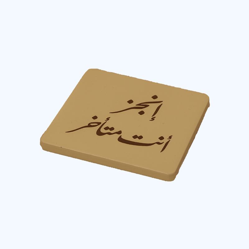 حامل كوب خشبي مربع بيج تم نحت جملة ( انجز انت متأخر) على سطحه بالخط االعربي المميز حيث يعكس ابداع الفنان الذي قام بعمل التصميم