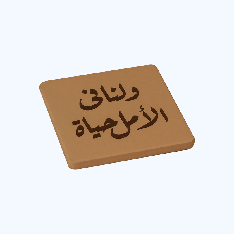 حامل كوب خشبي مربع روز تم نحت جملة (ولنا في الأمل حياة) على سطحه بالخط االعربي واللون البني المميز حيث يعكس ابداع الفنان الذي قام بعمل التصميم
