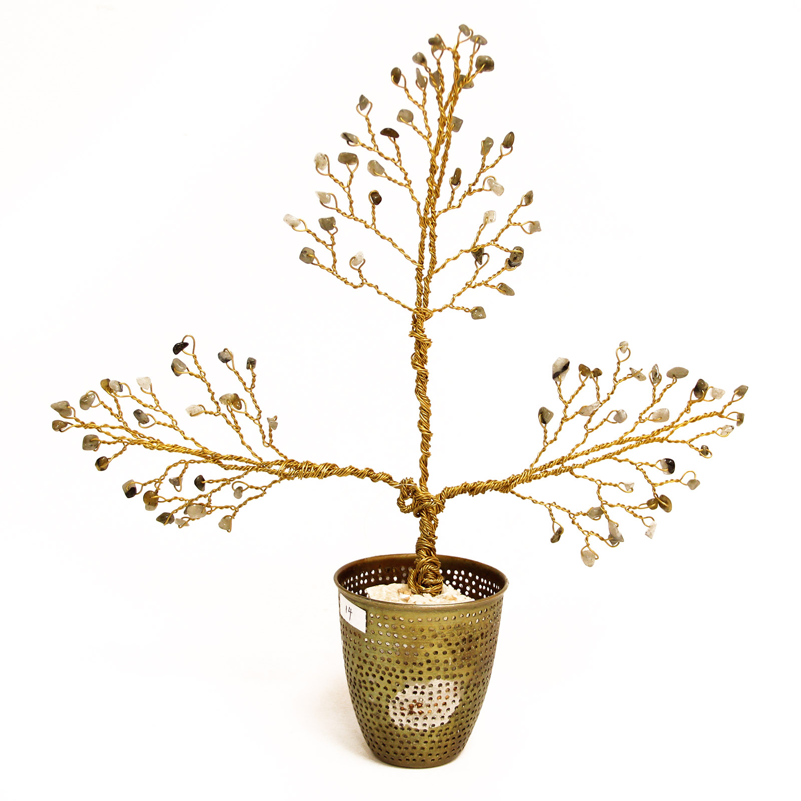 شجرة نحاسية مرصعة بحجر الطاووس بحجم كبير.