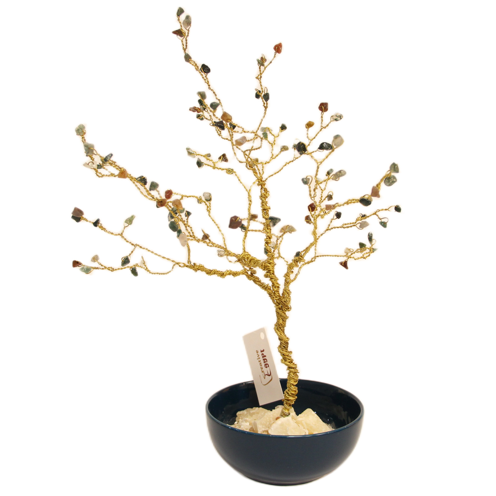 شجرة مصنوعة بدقة ومرصعة بالعقيق الطحلبي ذو الأشكال الطبيعية، تضيف لمسة من الطبيعة للديكور.