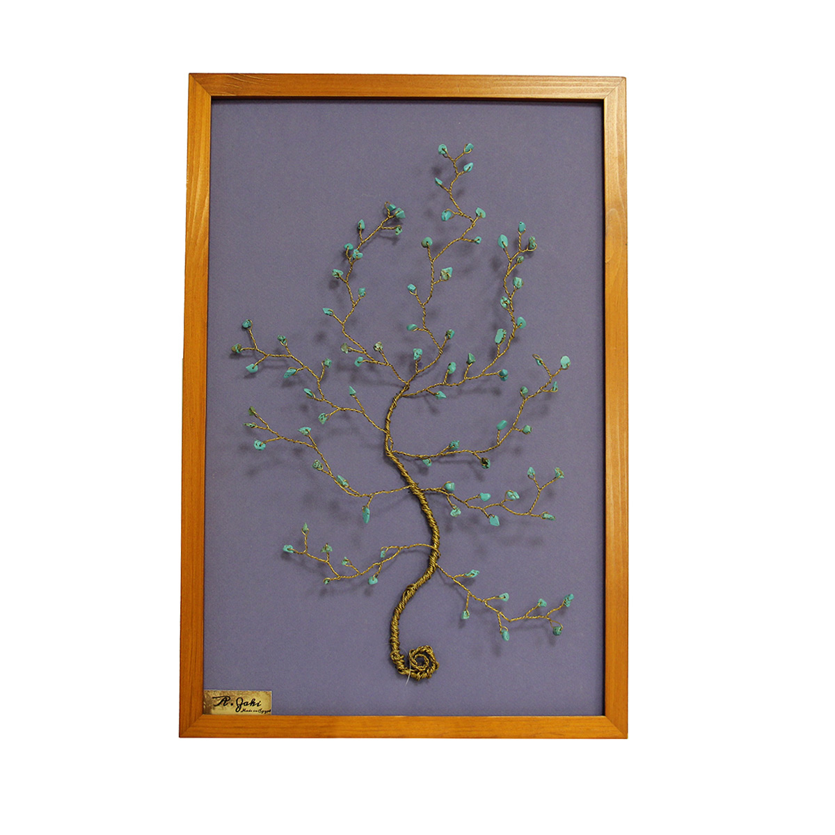 شجرة مثبتة داخل إطار عصري مزينة بالفيروز الطبيعي، جاهزة للتعليق وتضيف لمسة فنية راقية.