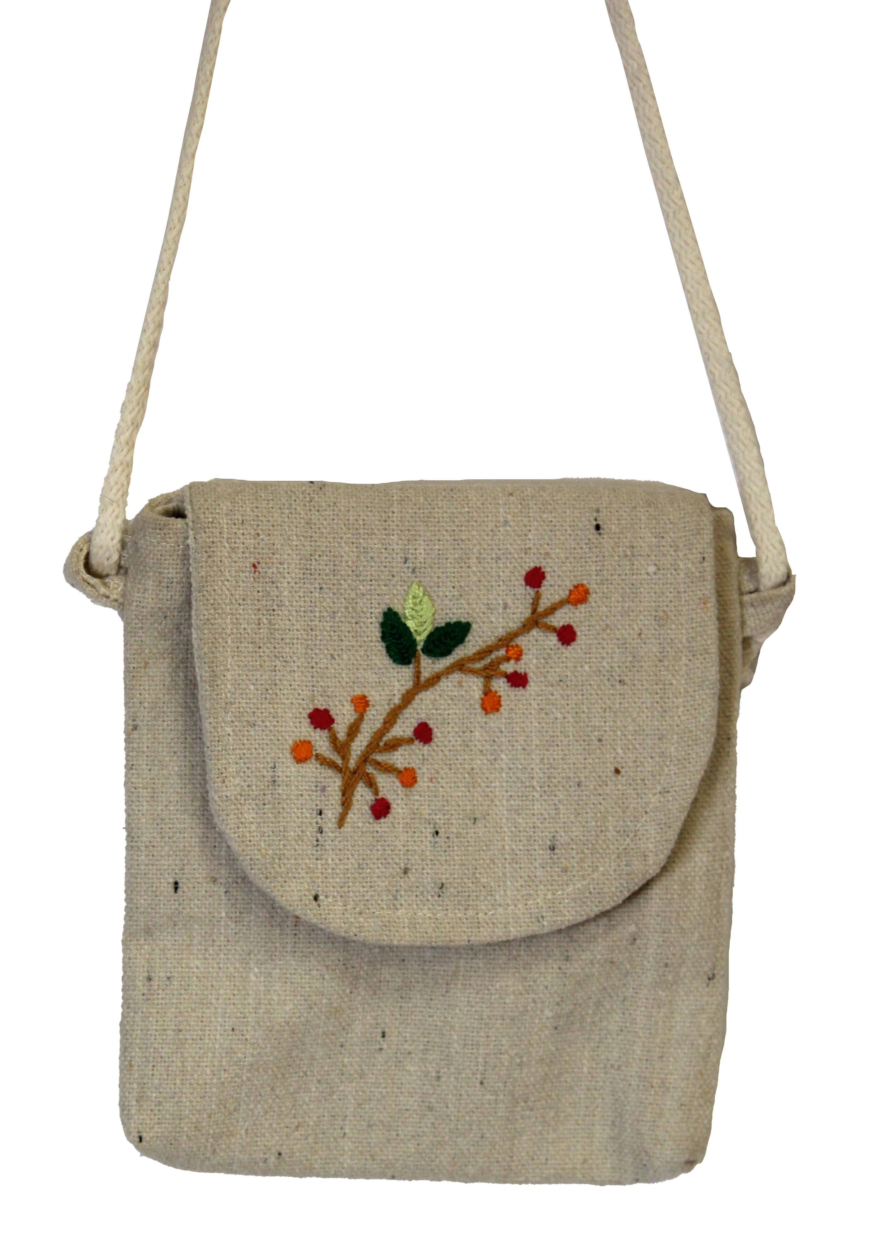 شنطة موبايل كروس بقلاب وكبسولة مغناطيس بتطريز فرع ورد ملون