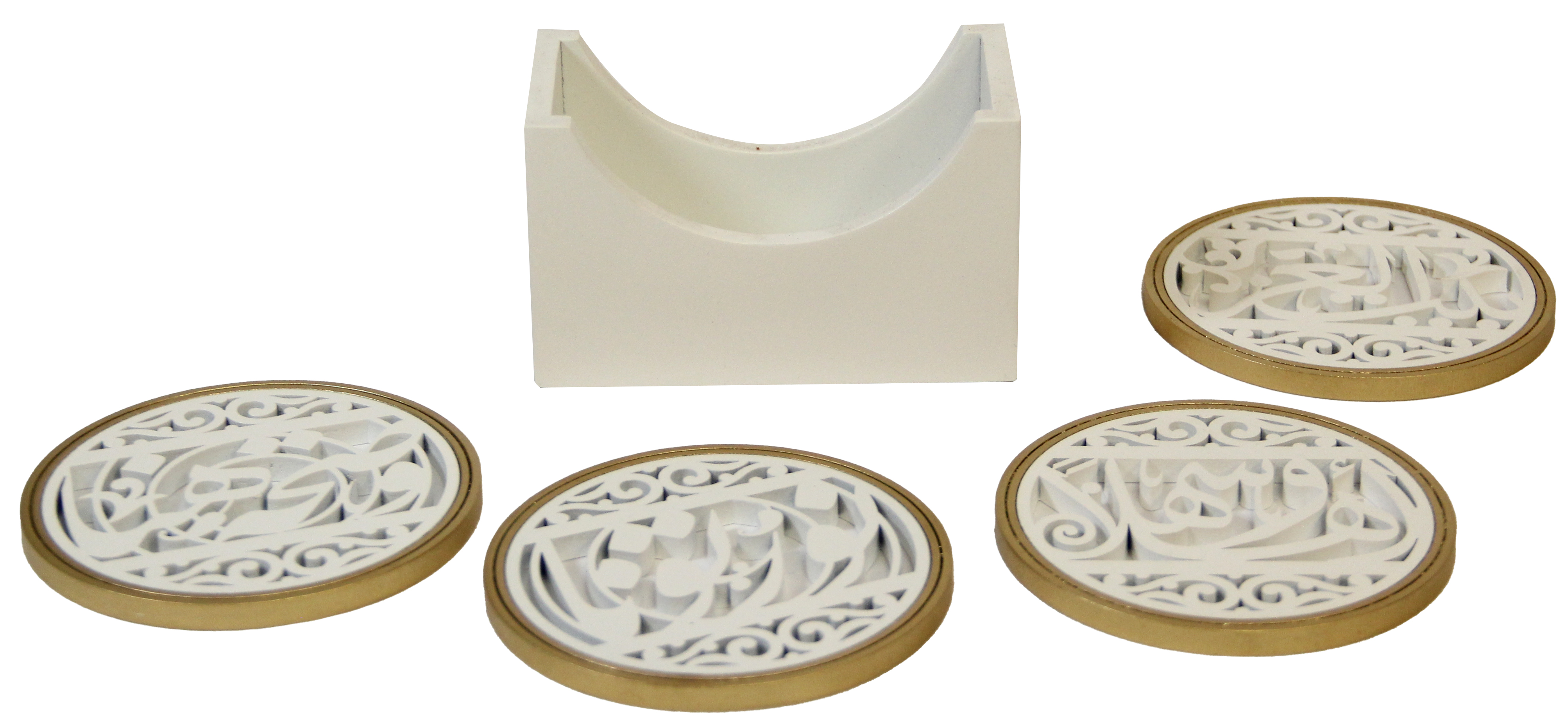طقم حوامل أكواب خشبية كلاسيكية باللون الأبيض