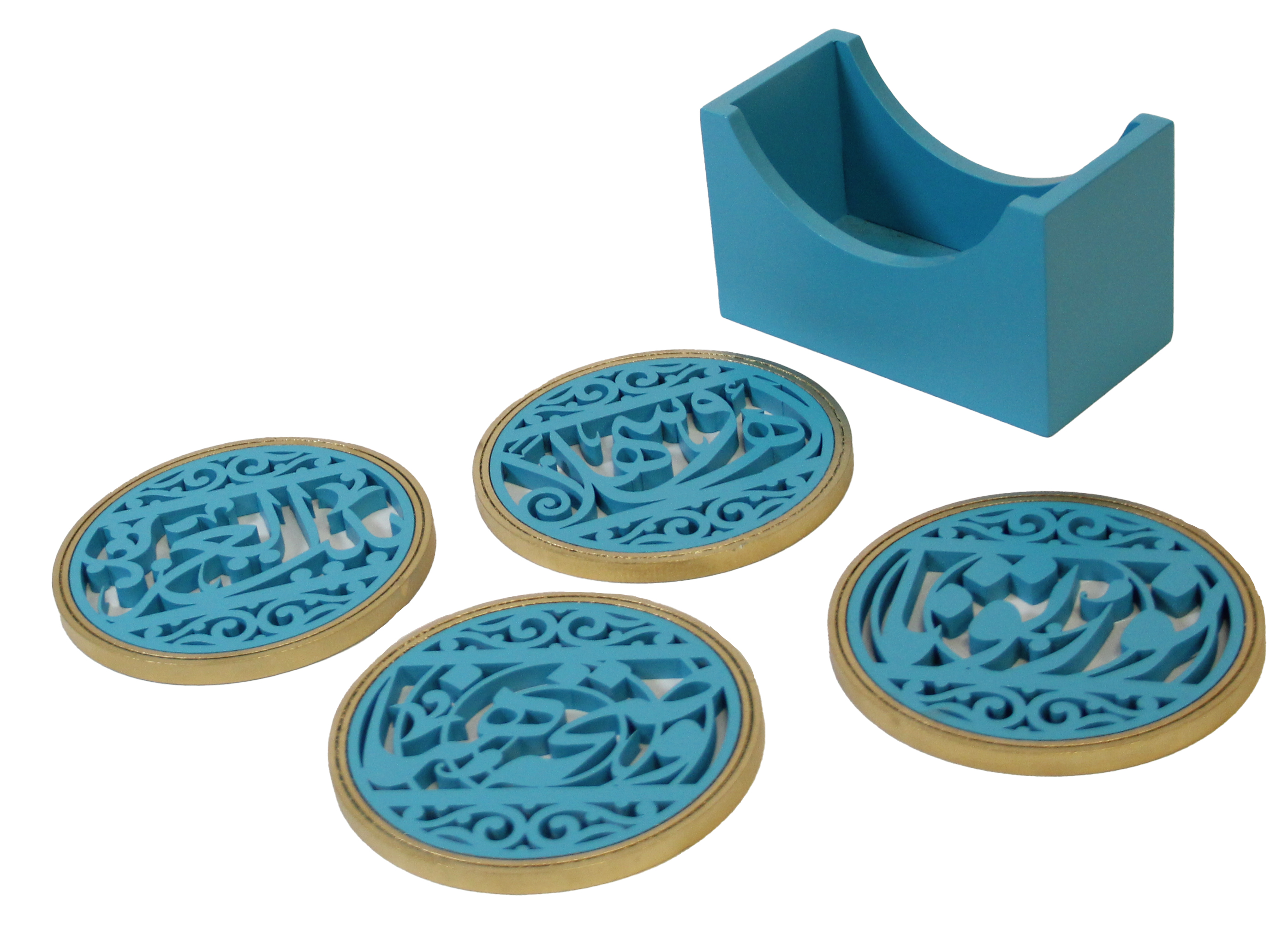 طقم حوامل أكواب خشبية باللون الأزرق