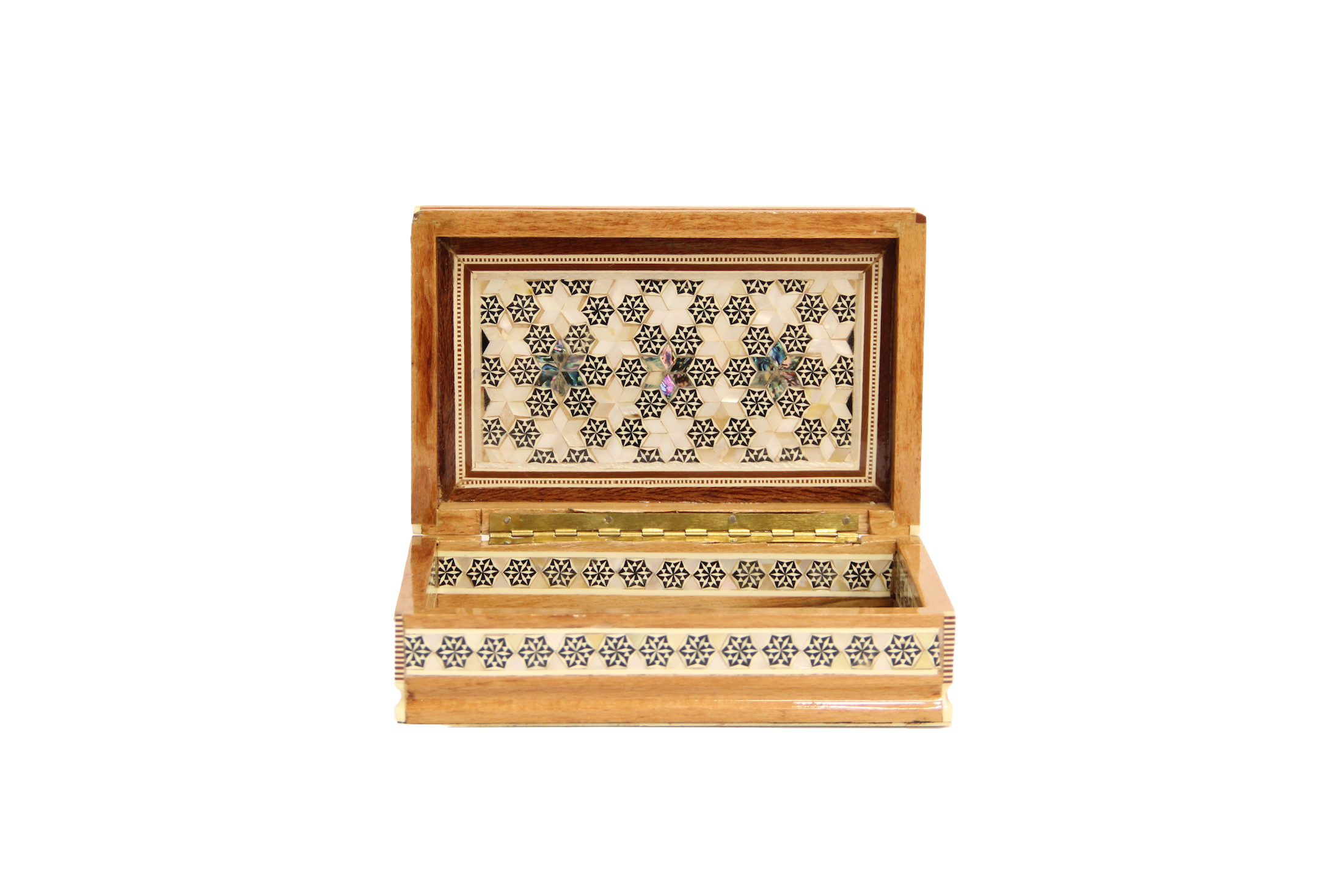علبة مطعّمة بالصدف من الداخل والخارج مع نقوش دقيقة، تصميم فاخر.