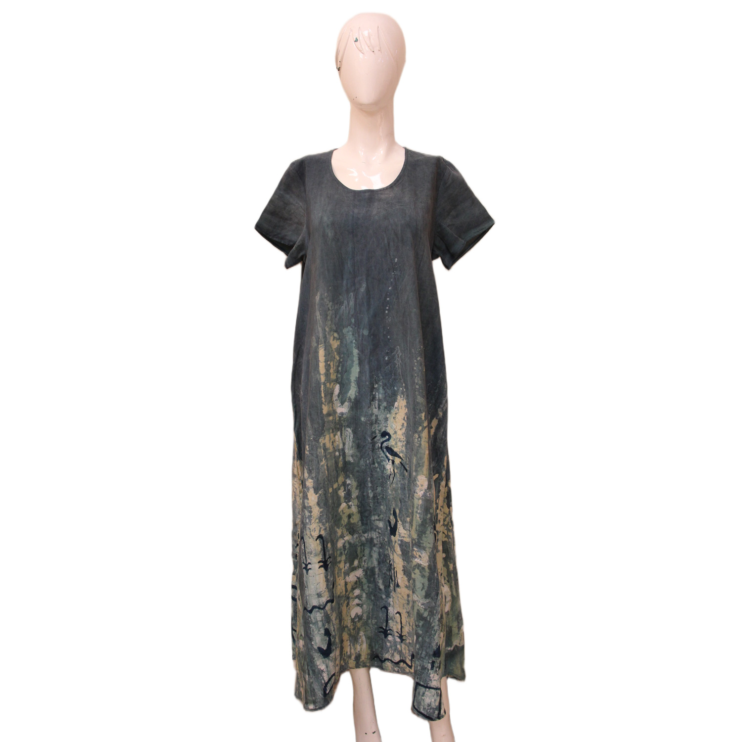 فستان بتصميم جعران مستوحى من الفن المصري التقليدي، مطبوع بتقنية باتيك لتميز لا مثيل له.