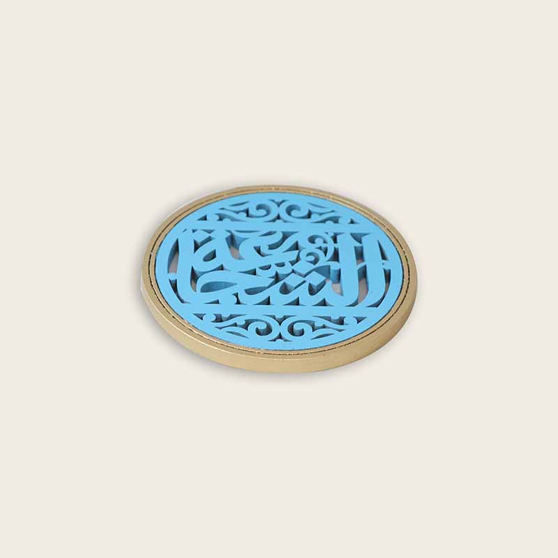 حامل كوب دائري أزرق حفر إسلامي ( الشجاعة )