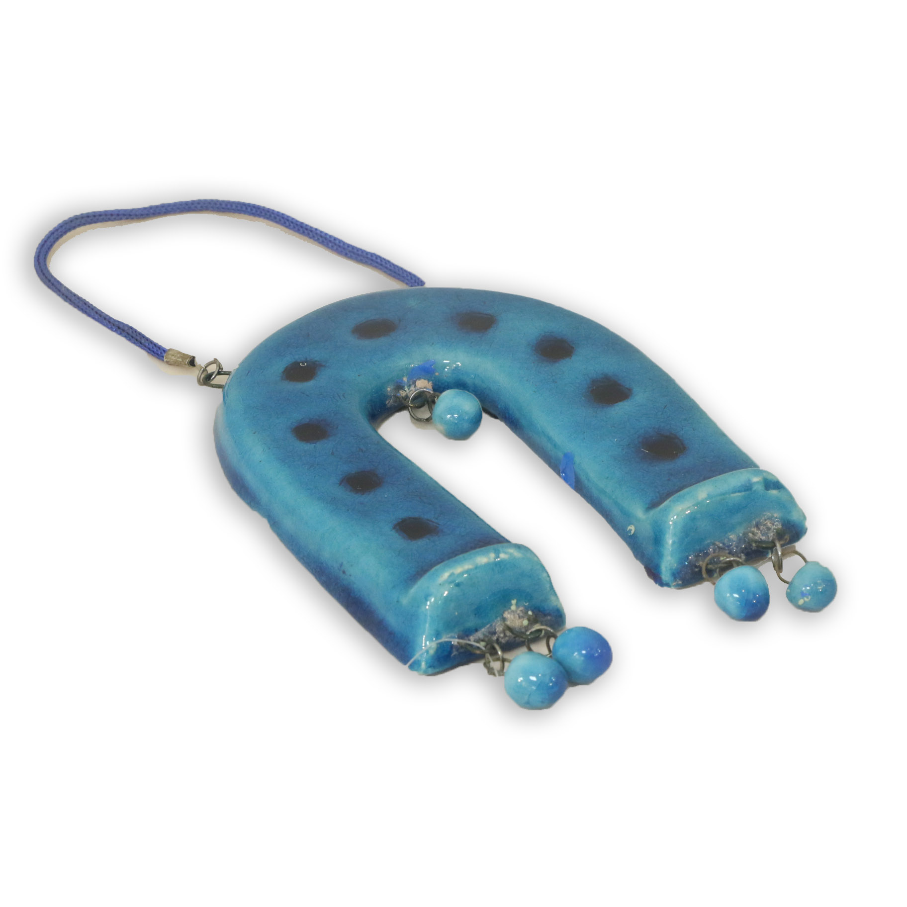 صممت هذه المعلقة الفنية بشكل حدوة الحصان التقليدية، والتي تُعرف كرمز للحظ والحماية في العديد من الثقافات. مصنوعة يدويًا من الخزف عالي الجودة باللون الأزرق الفيروزي الجذّاب، لتكون قطعة ديكور لافتة تضيف لمسة من الرمزية والجمال إلى أي مساحة. مناسبة لتعليقها في المداخل أو فوق الأبواب كزينة ذات طابع روحي ومعنوي.