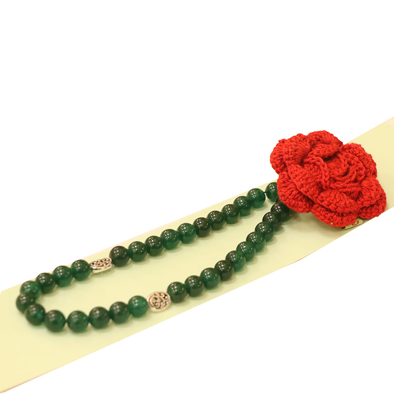 سبحة مصممة بذوق رفيع، مصنوعة من 33 حبة طبيعية من العقيق البرازيلي المستدير، بلون أخضر غامق يضفي عليها لمسة من الوقار والهدوء. تتميز بوجود وردة كروشيه يدوية تضيف طابعًا فنيًا مميزًا. مثالية للاستخدام اليومي في التسبيح أو كهدية روحية فريدة.