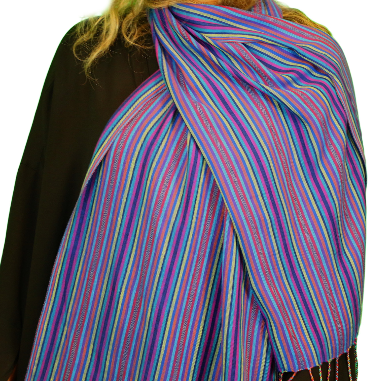 شال قطن فركة مقلم لون بنفسجي 45*160
